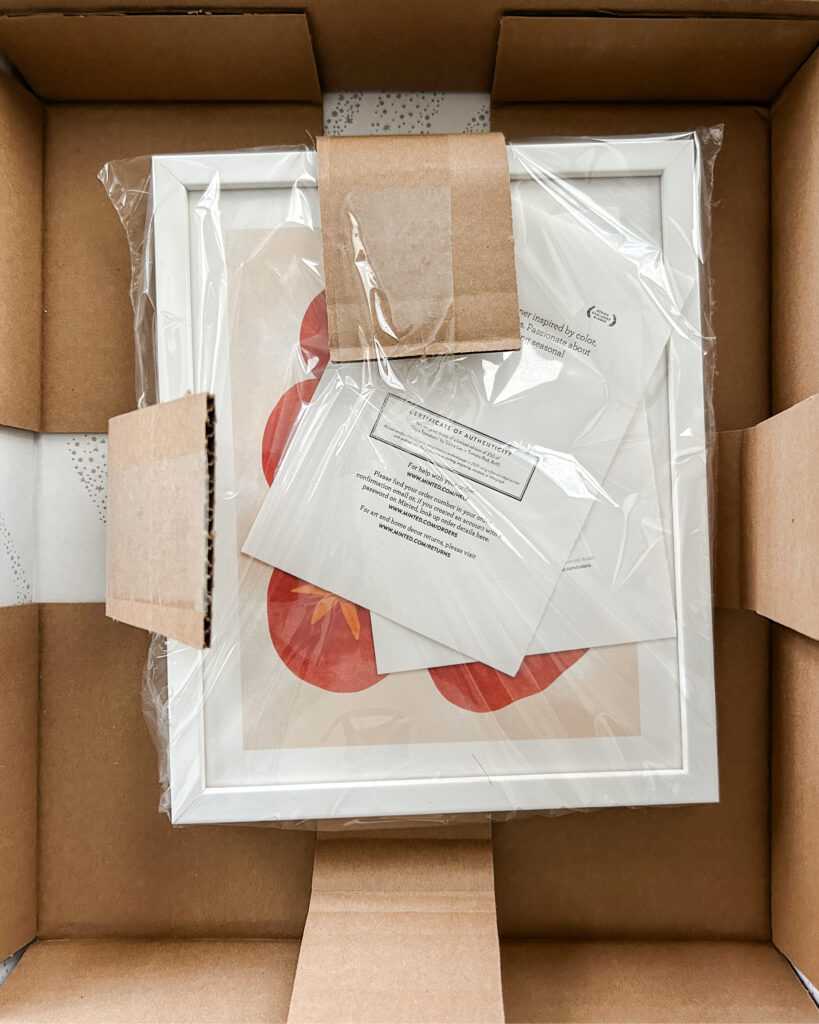 All in all, I’m so happy with my Minted framed art print. This was a quick unboxing but one I wanted to share. I’m still deciding on the perfect spot for it, but if you’re curious about my piece or searching for unique, high-quality art created by more independent artists, you can explore Minted’s collection here.